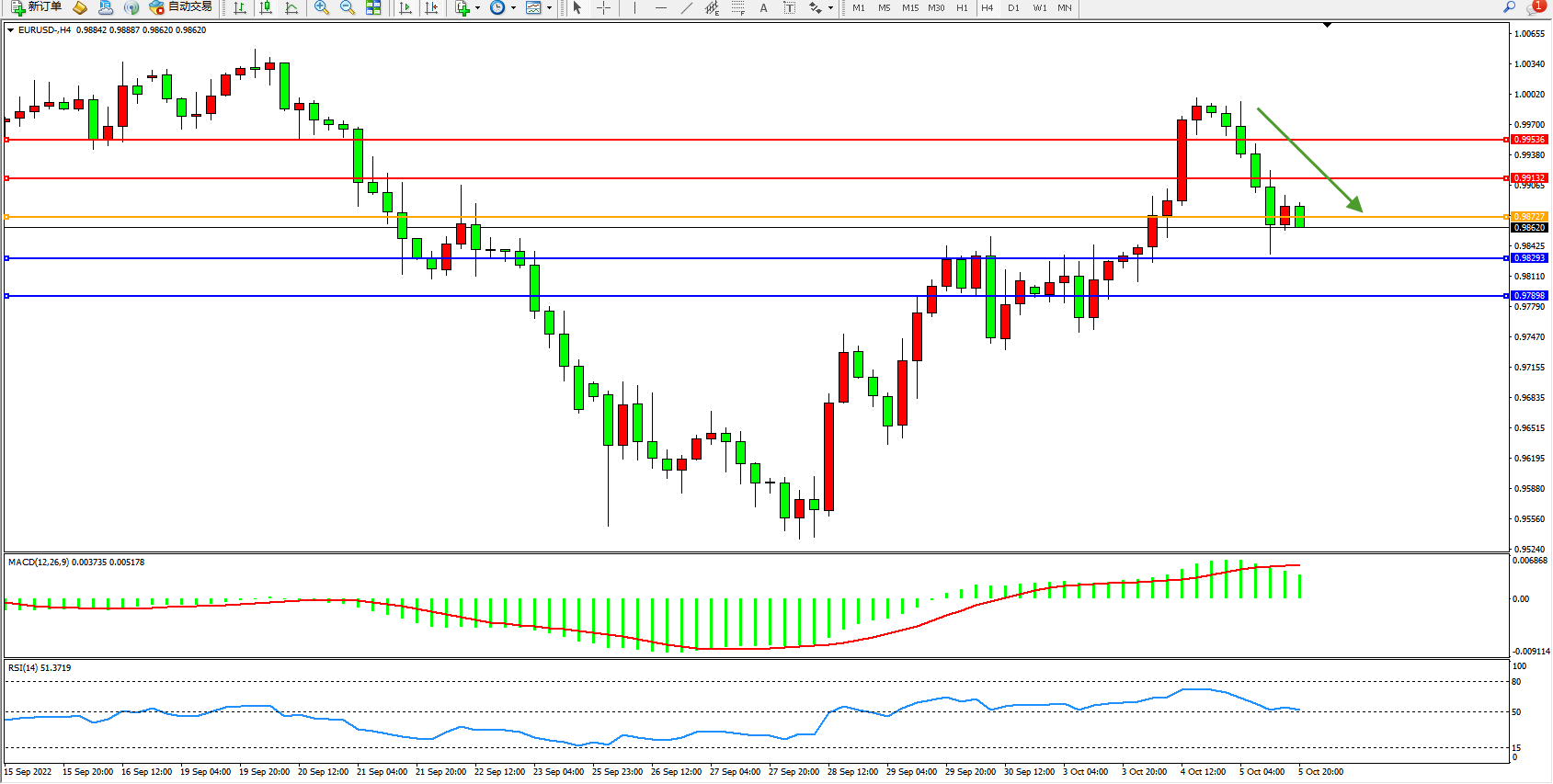 交易策略:0.98727下方看跌,目标0.98293、0.97898