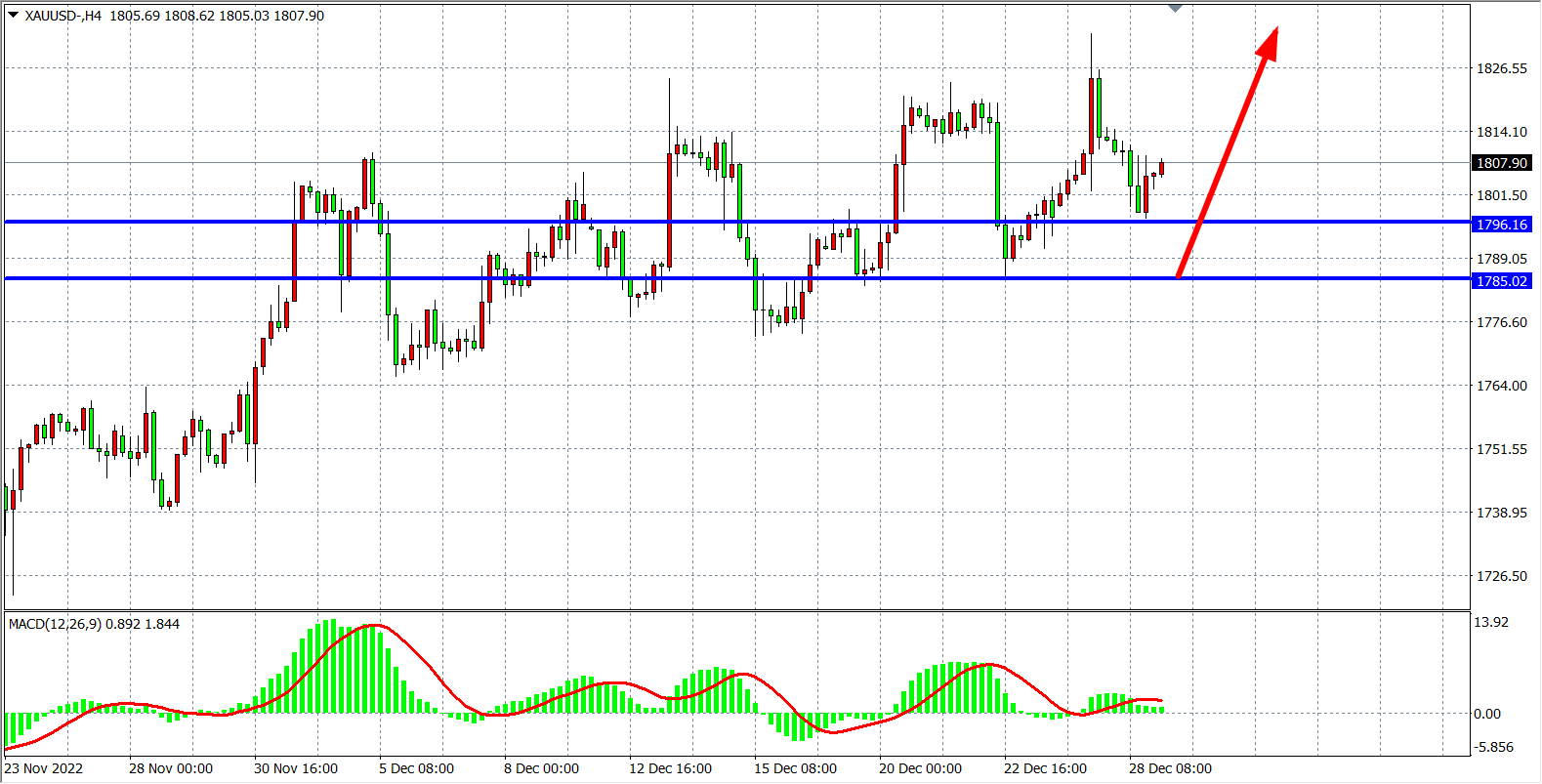 交易策略:在1796.00 之上看涨,目标1820.00         1835.00
