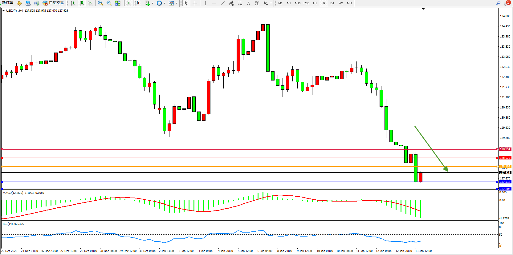 交易策略:128.192下方看跌,目标127.517、127.204