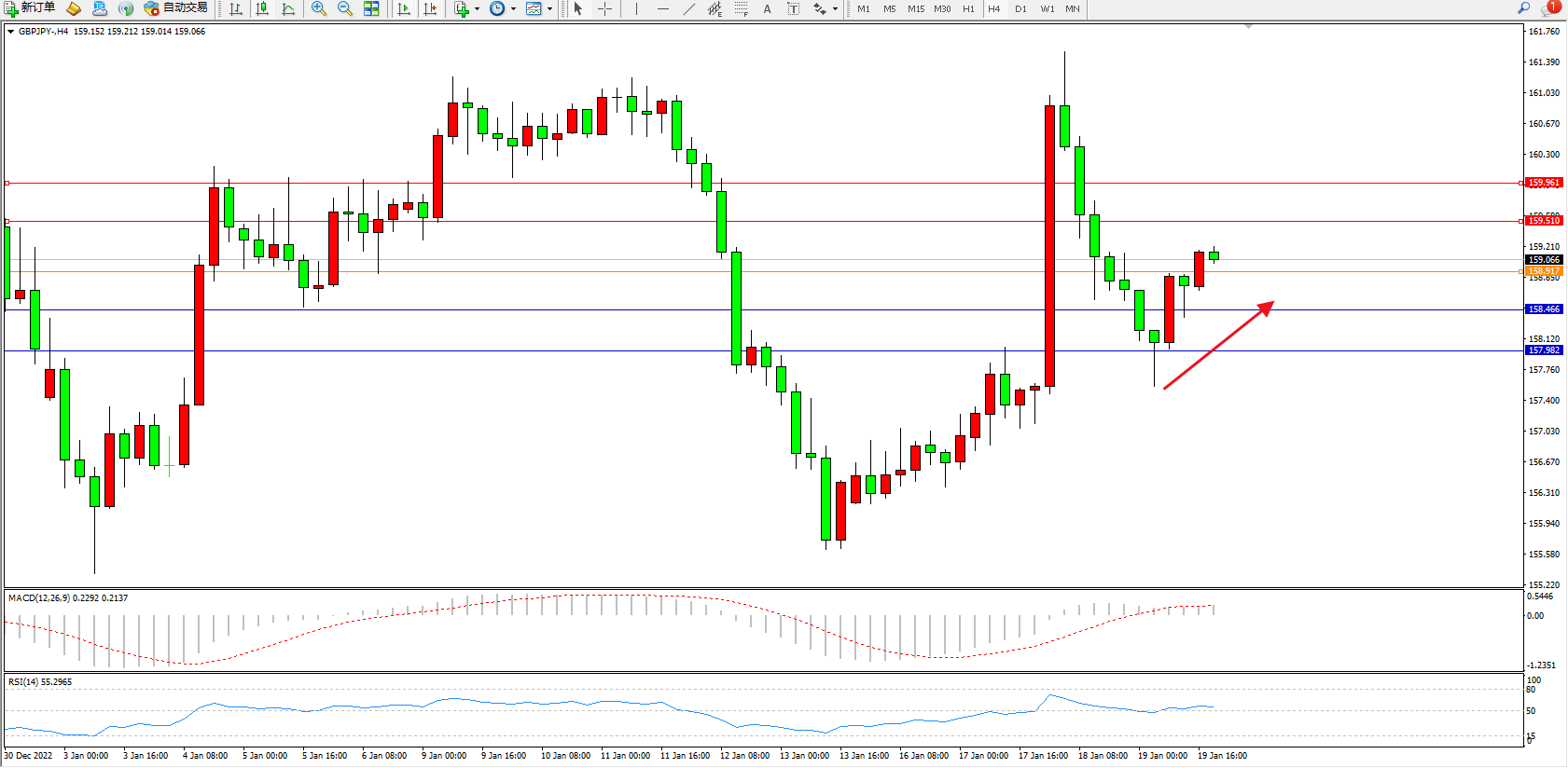 英镑兑日圆维持159.066附近震荡,英国央行行长贝利表示,预计英国通胀率将大幅下滑。能源价格下跌将降低通胀,劳动力市场是通胀的上行风险,认为英国经济衰退将持续很长时间,但程度较浅,12月通胀下降标志着形势已经开始好转。