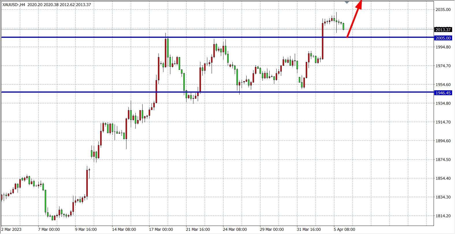周三(4月5日)因不及预期的3月“小非农”数据以及非制造业PMI数据助燃了市场对经济放缓的担忧,并刺激了对美联储可能放缓加息的押注,现货黄金续刷去年3月以来的新高 ,最终冲高回落,回吐日内大部分涨幅,勉强收涨0.01%。展望后市,金价的大涨趋势短期内难以逆转,短线调整过后仍是机会。