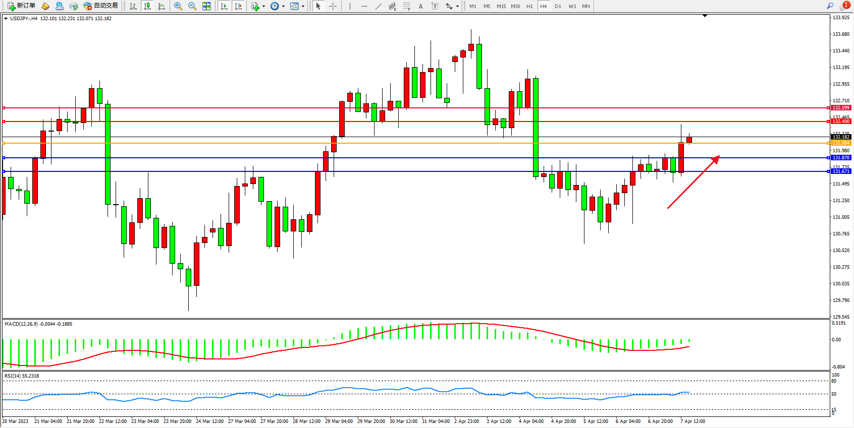 阻力位:132.400  132.599