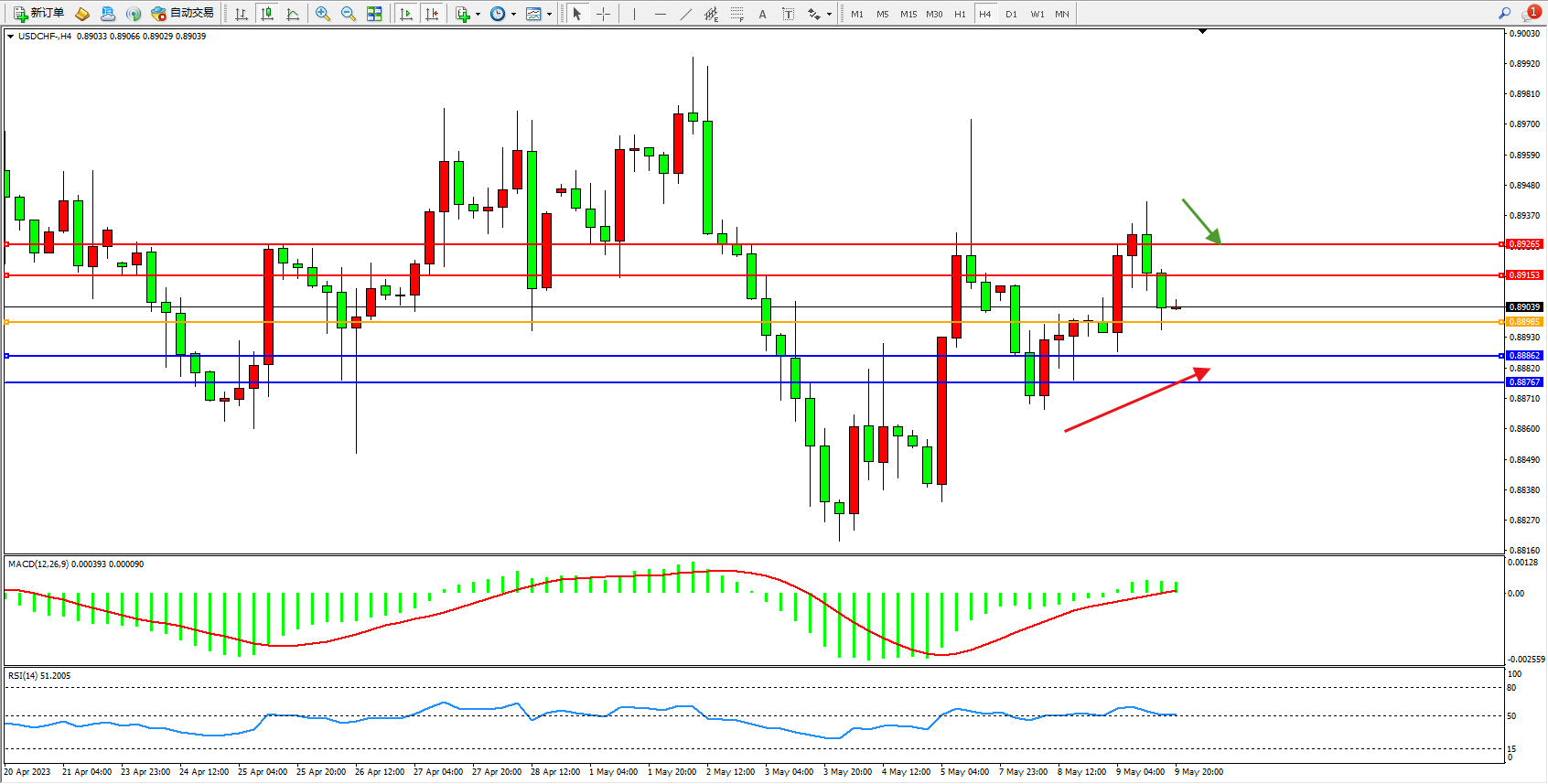美元瑞郎USDCHF——4小时K线图显示: