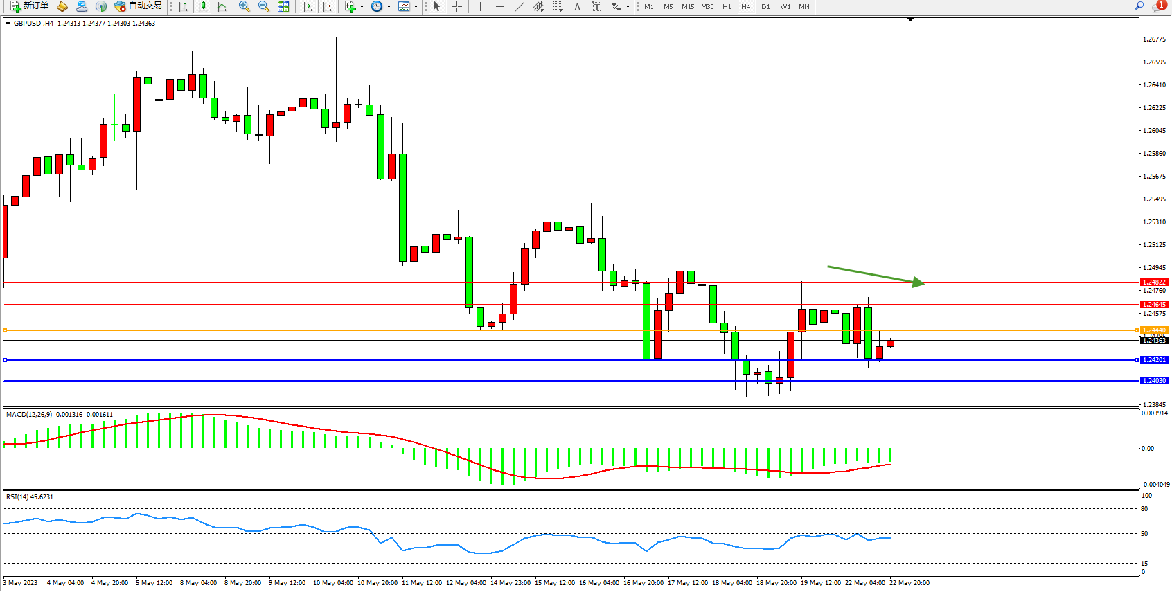 备选策略:1.24440上方看涨,目标1.24645  1.24822