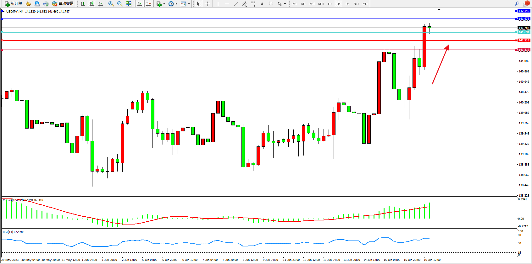 交易策略:141.691上方看涨,目标141.979 142.140