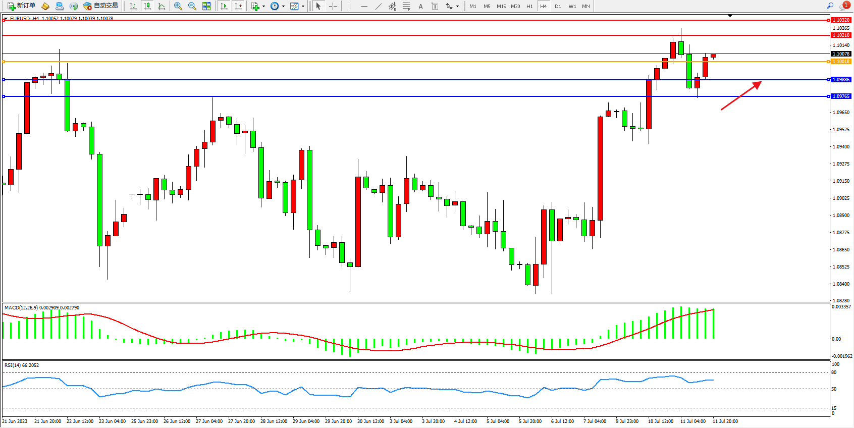 交易策略:1.10018上方看涨,目标1.10210  1.10320