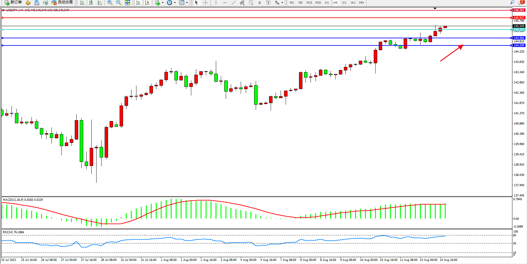 阻力位:145.937  146.281
