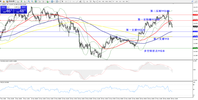 压制位:第一压制113.68;第二压制113.88
