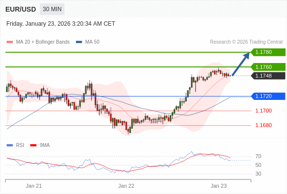 交易策略: 在 1.1720 之上,看涨,目标价位为 1.1760 ,然后为 1.1780 。