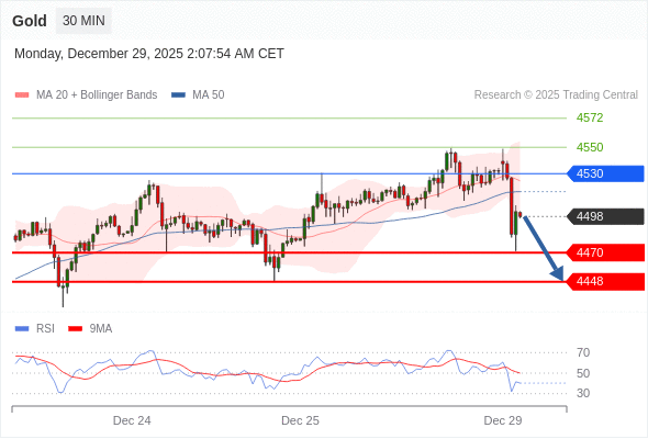 交易策略: 在 4530 之下,看跌,目标价位为 4470 ,然后为 4448 。
