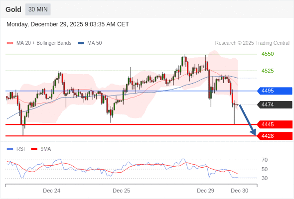在 4495 之下,看跌,目标价位为 4445 ,然后为 4428 。