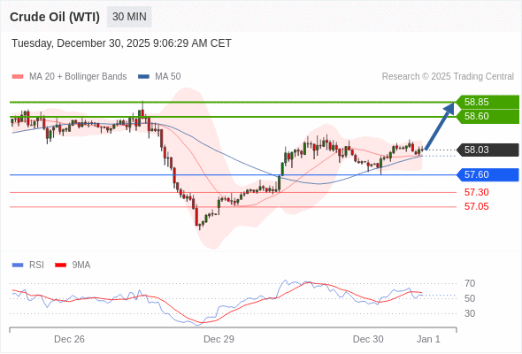 在 57.60 之上,看涨,目标价位为 58.60 ,然后为 58.85 。