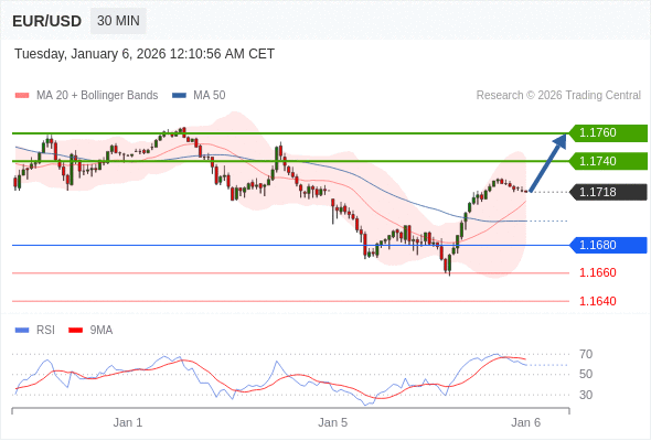 在 1.1680 之上,看涨,目标价位为 1.1740 ,然后为 1.1760 。