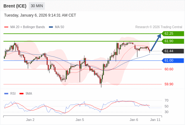 在 61.00 之上,看涨,目标价位为 61.90 ,然后为 62.25 。