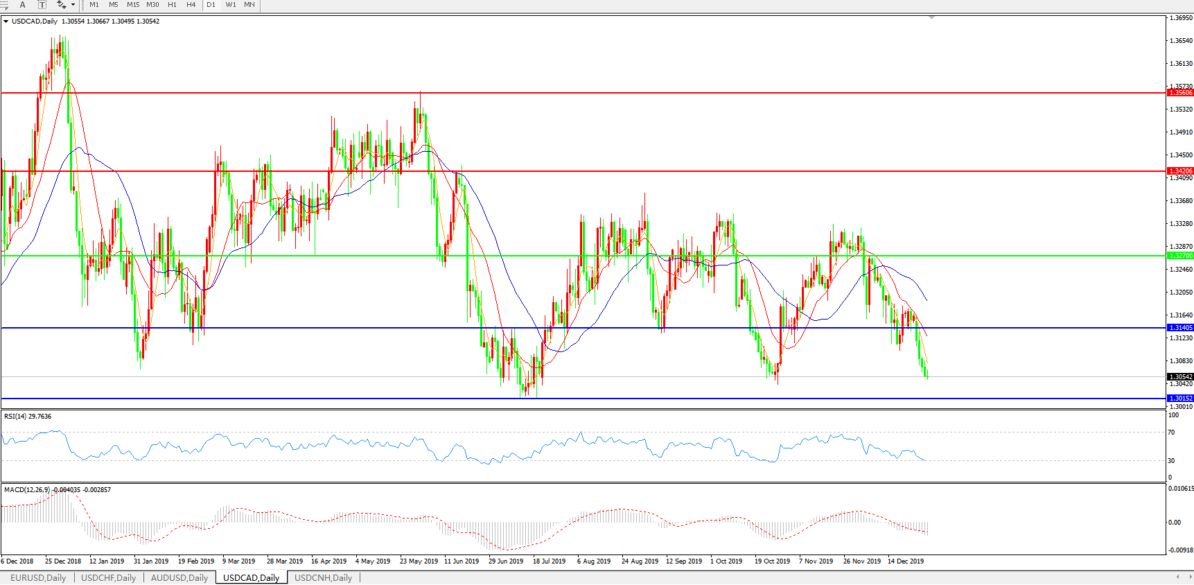 美元兑加元USDCAD 日线图: