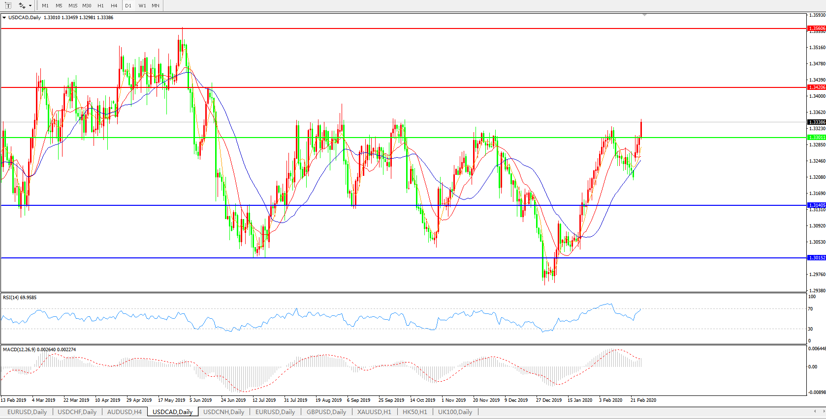 美元兑加元USDCAD    日线图:
