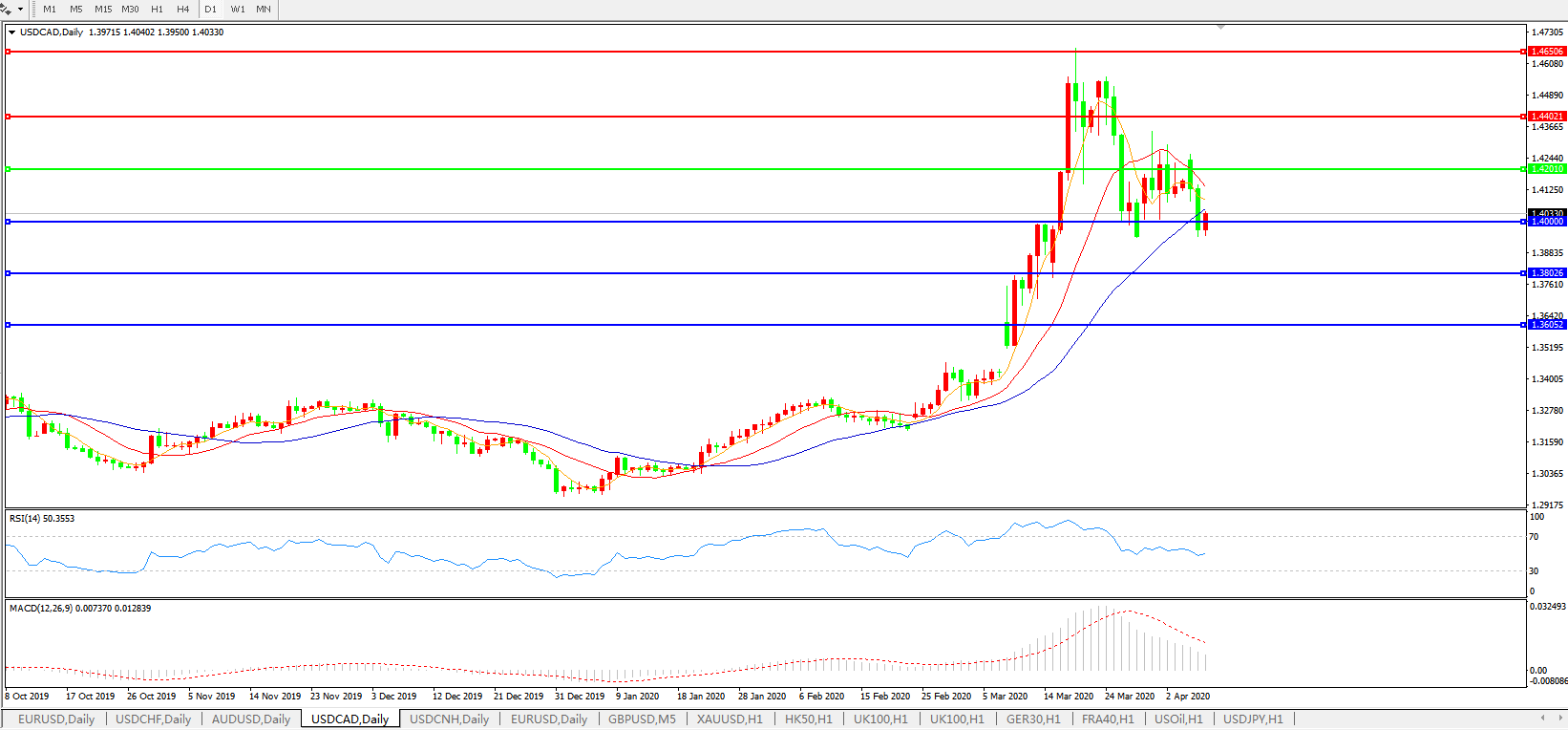 美元兑加元USDCAD    日线图: