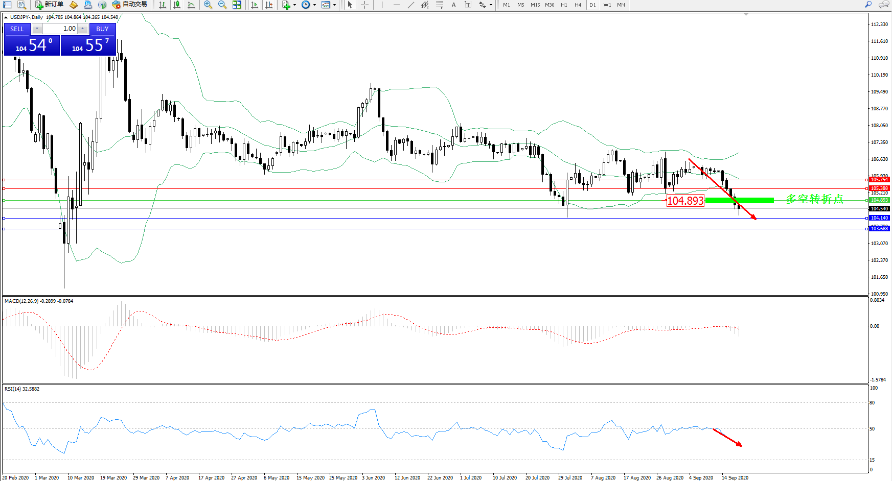 交易策略:104.893下方看跌,目标104.140、103.688