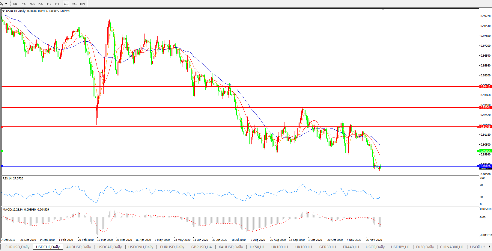 美元跌势短期缓和,美元兑瑞郎持续弱势