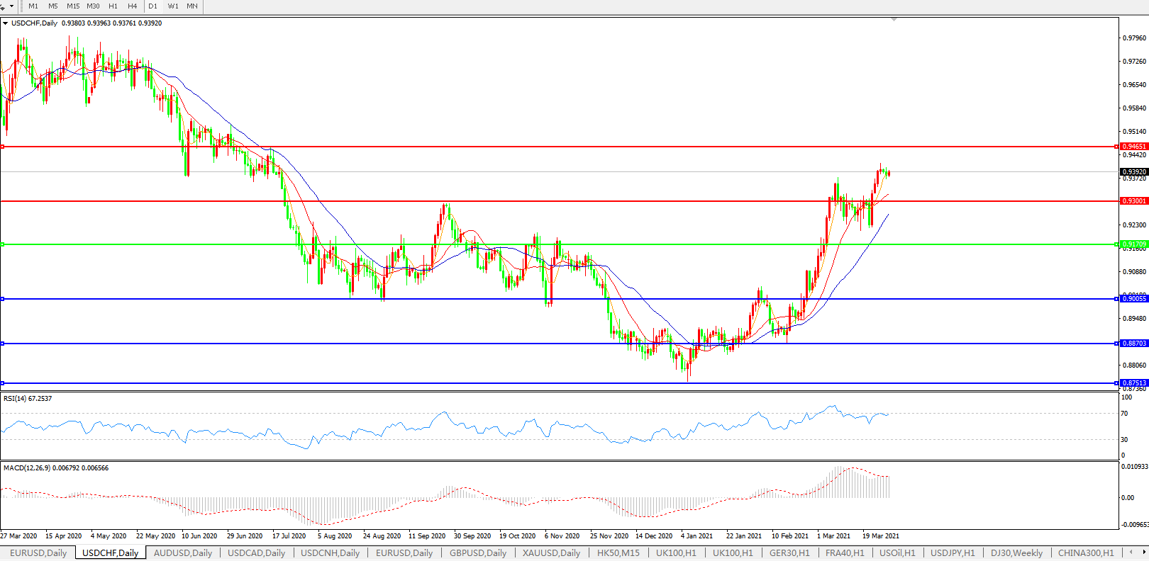 美元兑瑞郎USDCHF    日线图: