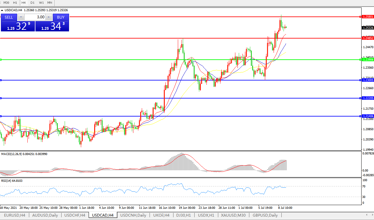 美元兑加元USDCAD 4小时图: