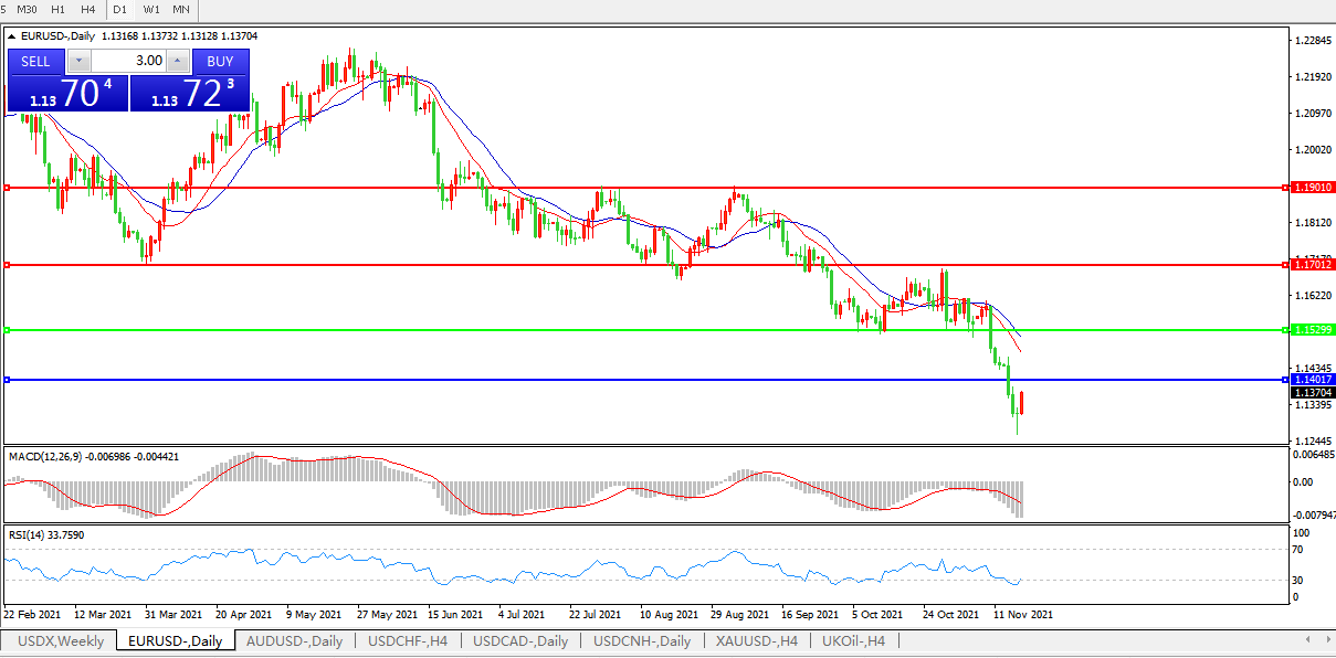欧元兑美元0.46%,至1.1371,从周三触及的1.13美元下方的16个月低点反弹。英镑兑美元上涨0.05%,全天上下震荡,此前英国10月通胀率飙升,给英国央行在下个月的政策会议上带来加息压力。