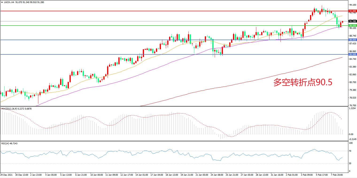 交易策略:在90.50之上看涨,目标93.00 96.00