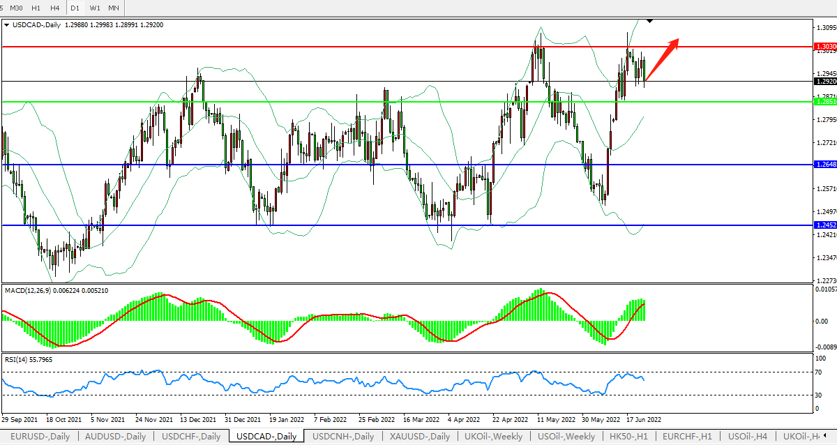 日线图看:持续运行于布林上轨整理蓄势 ,布林带指标开口走势上移中,MACD于0轴下上攻且量能快速放量,RSI稍微走弱,预计短期汇价大概率将在回踩整理后进一步上行。