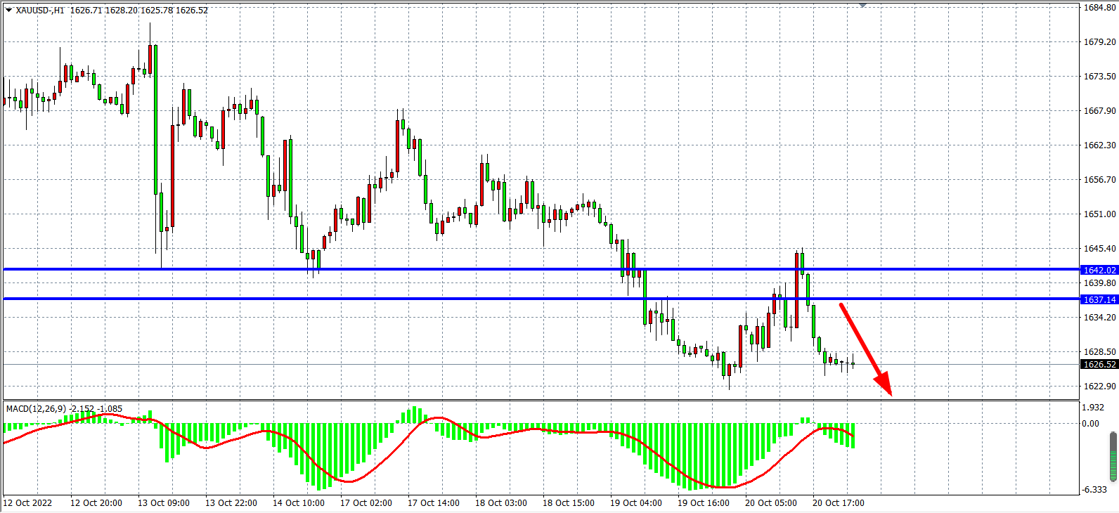 交易策略:在1637.00  之下看跌,目标1615.00         1600.00