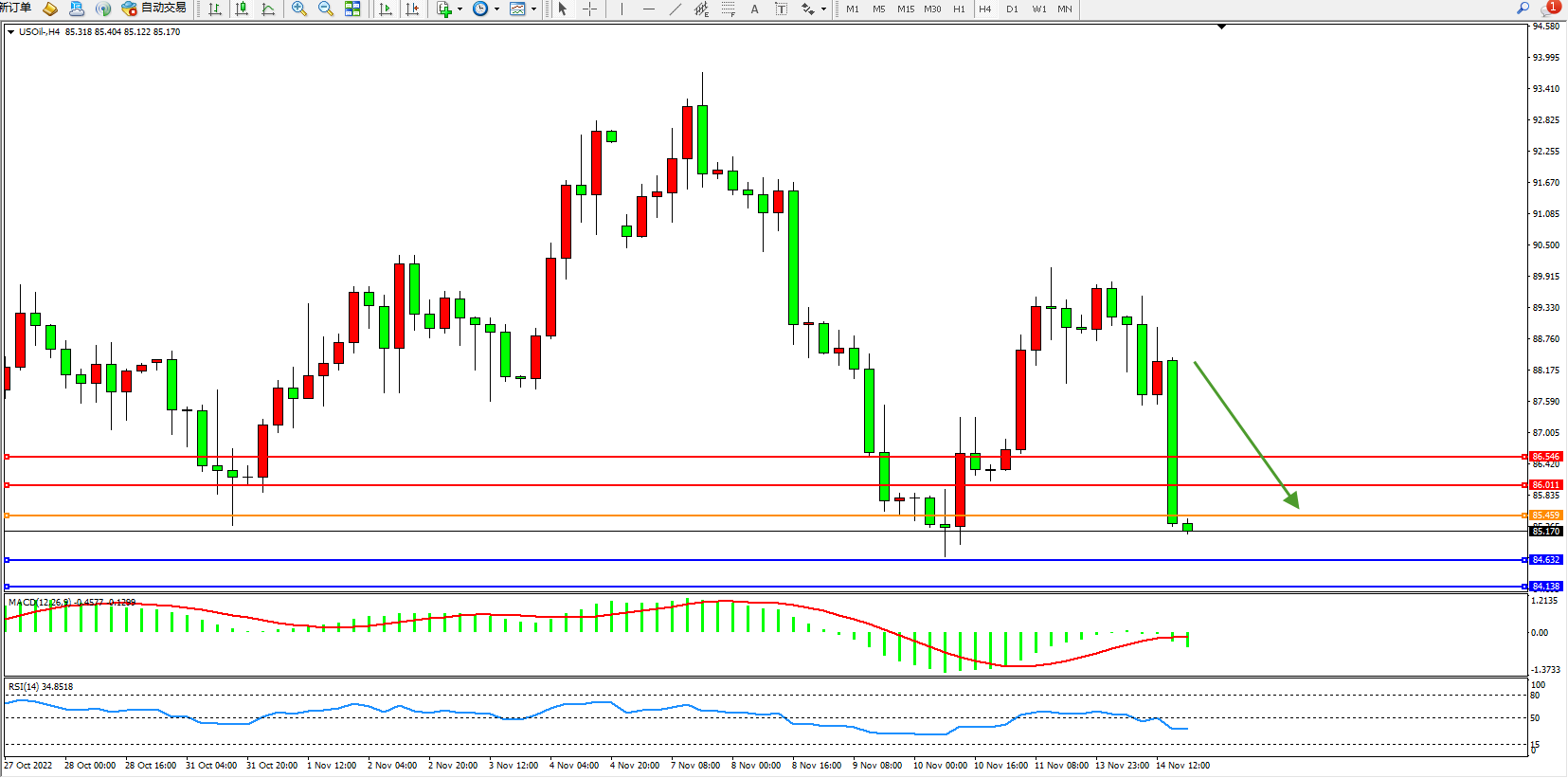 交易策略:85.459下方看跌,目标84.632、84.138