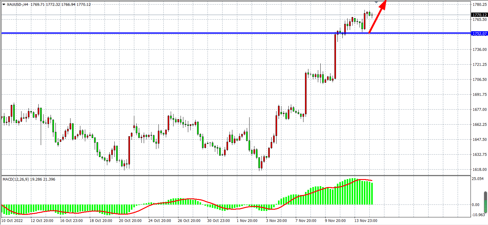黄金:1752之上看涨