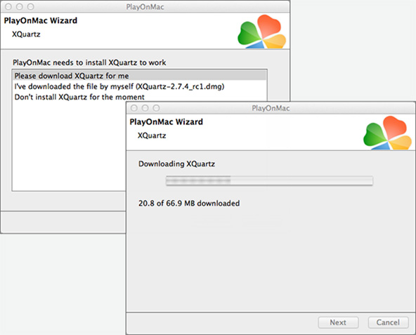 1. PlayOnMac 首次启动窗口就会出现。单击 "Next" (下一步)后,安装程序就会开始检查,并安装工作所需的各种组件。